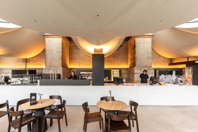 Nutzungskonzept und Flexibilität: Das Domcenter fungiert als einladender Zugang zur Kirche, vergleichbar mit dem Foyer eines Museums oder Konzertsaals. Besucher:innen werden durch ein modernes Café und einen Infopoint empfangen und von dort über eine neue Raumfolge zum historisch richtigen Eingangsbereich der Wegekirche im Norden geleitet. Im Inneren definiert ein geradliniger Tresen die Raumstruktur und führt die Besucher:innen durch die verschiedenen Bereiche. Das Domcenter vereint touristische und seelsorgerische Angebote und bietet zugleich einen flexibel nutzbaren Raum für kirchliche und nichtkirchliche Veranstaltungen. Der unterkellerte Bereich beherbergt Toiletten und Nebenräume. Ein neuer Aufzug verbindet die Geschoße und ermöglicht auch die barrierefreie Erschließung des Mariendoms vom Domplatz aus.
