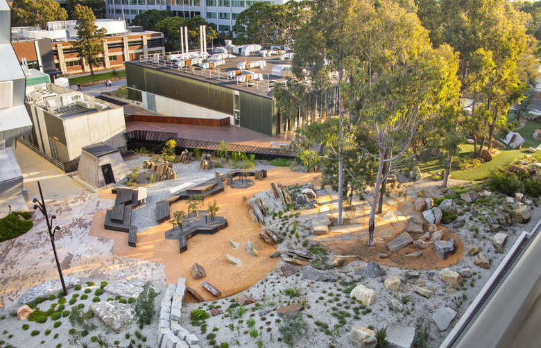 Each rock type is representative of different formations and geological age. The angle, orientation, and specific placement of approximately 500 rock specimens tell a local geological story, while the larger arrangements create a diverse series of landscape spaces. Feature rocks, stone pavements, gravels, mulches and plantings all echo the environments of specific regions of Victoria. Forms and shapes collide, creating difference and roughness at boundaries and edges. The effect is more ‘national park’ than curated display garden.