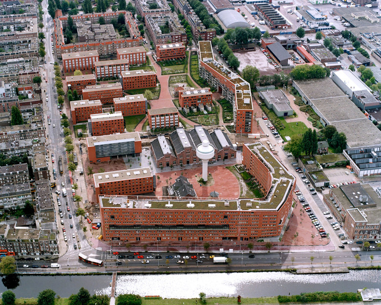 An environmentally friendly and car-free residential area has been realised on the former site of the municipal drinking-water company ('GWL') in Amsterdam. Owing to its strong cohesion and high density, the GWL site presents itself as a single, large-scale urban element in its surroundings. At the same time it is an open zone with residential blocks in the midst of greenery, an oasis of calm in the metropolitan chaos. The GWL site marks the boundary between the traditional housing blocks of the Staatslieden neighbourhood and the businesses and industry to the west.