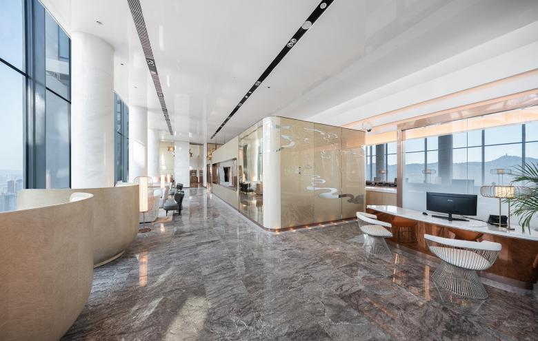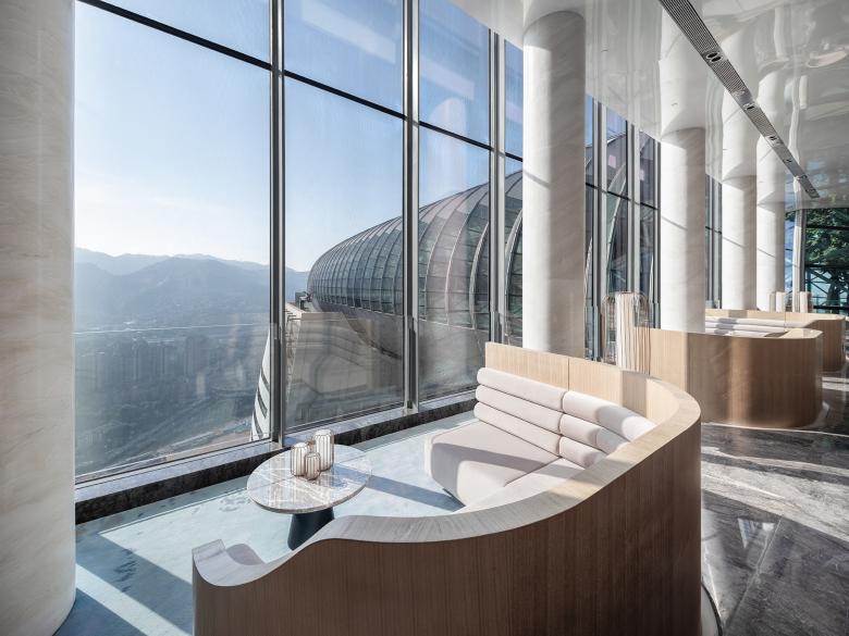 CL3 Architects is the interior design team of the hotel's main areas. Besides the hotel, CL3 together with Safdie Architects designed the residential lobby and common area for towers T1 Jialing Two, T2 Jialing One, T3N One Altitude, T5 Yangtze One, T6 Yangtze Two, as well as the residential clubhouse inside the crystal sky bridge on level 42.