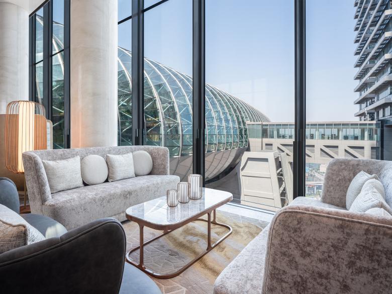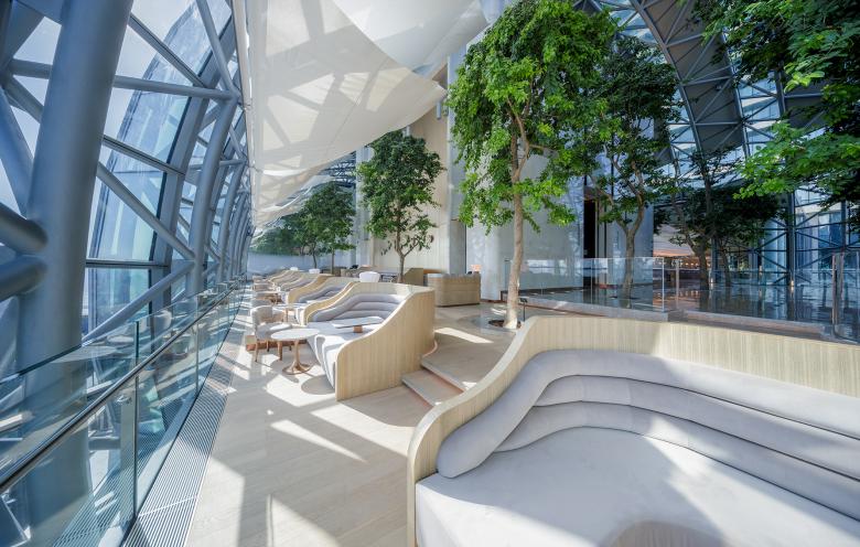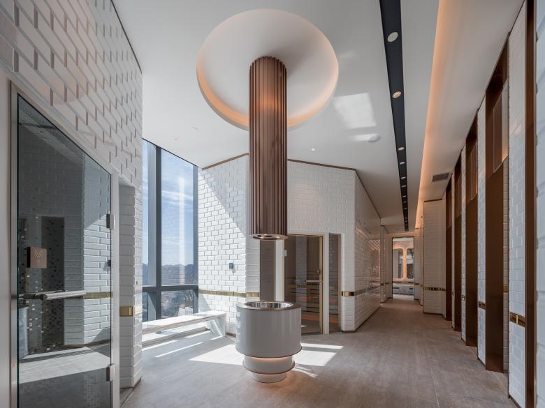 CL3 together with Safdie Architects designed the residential clubhouse inside the crystal sky bridge on level 42, which boast the most dramatic indoor swimming pool, gym, spa and private function rooms.