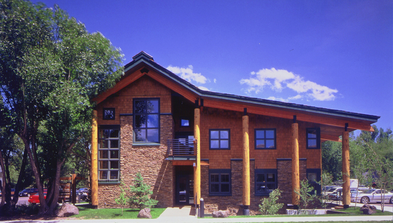 Constructed as one of the first planned-mixed use development in the town of Jackson, the Lyman building demonstrates Ward + Blake Architects’ commitment to cutting-edge design and innovation within the boundaries of sometimes stringent zoning and budgetary considerations. Designed on a development budget that required optimal return on investment, the Lyman building maximizes leasable floor-area-ratio with a daylight basement that is literally carved out of the site to create full-height windows in downstairs apartments. Three commercial spaces work smartly together in the flexible two-story loft-like interior. Residential and commercial uses combine comfortably, including a shared parking lot accessed by residents primarily at night and commercial customers by day. Located at a downtown intersection, the Lyman building was designed to interface with two busy streets, using a barn like form to integrate with the Jackson Hole vernacular.