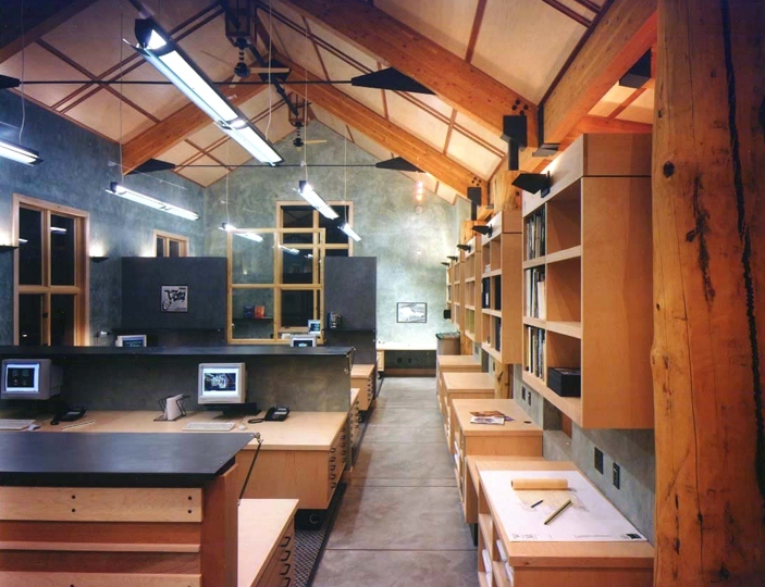 Featuring an appealing combination of wood shingles, steel railings, and bronze hardware, the Lyman building is both contextual and practical in its use of material, requiring minimal maintenance. Two-story structural wood columns visually minimize the building’s mass, while iron railings create negative space that further divides the large elevations. A successful experiment in designing for a multi-purpose program, the Lyman building enjoys continued success as a commercial and residential space.