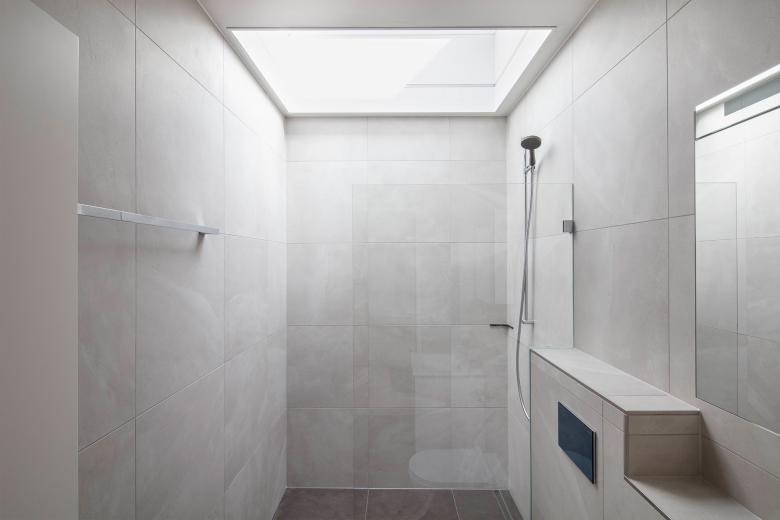 Für den technisch versierten Bauherr war klar, dass er seinen eigenen Strom produzieren wollte. Dank sonniger Lage ist das Hausdach geradezu prädestiniert für eine grosse Solaranlage, die den gesamten Strom für den Eigengebrauch liefern soll. Eine allfällige Überproduktion wird nicht ins Gemeindenetz eingespeist, sondern in einer speziellen Batterie für einen späteren Gebrauch gespeichert oder gleich das Elektroauto aufgeladen.