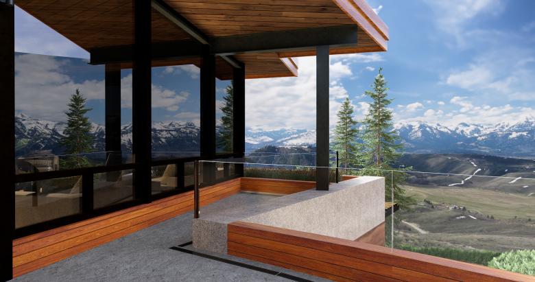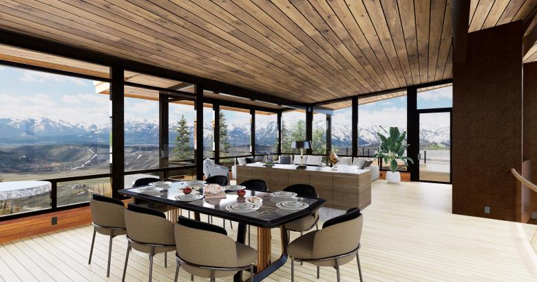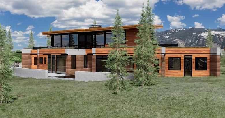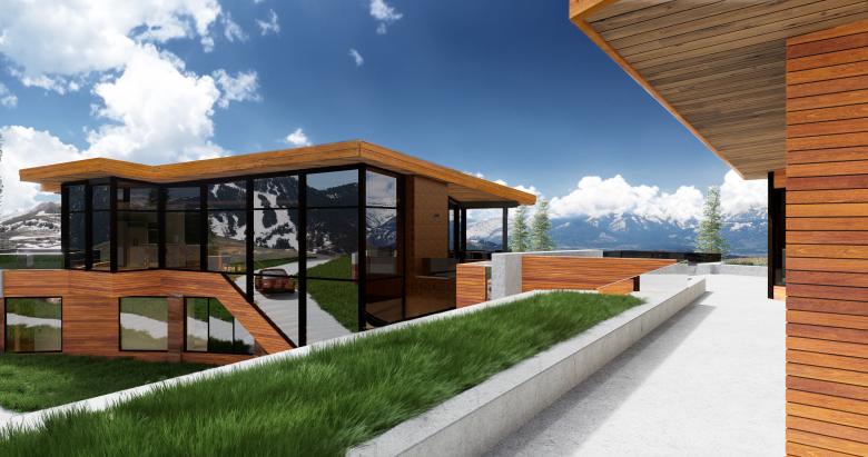The PLC Residence is located on top of a butte in Jackson Hole with 300 degree view panorama. The client wanted to capture all views and requested a house of mostly glass. However, the client wished to offset the glass by implementing "green principals". In addition, the house needed privacy from the cul-de-sac ending on the client's property.