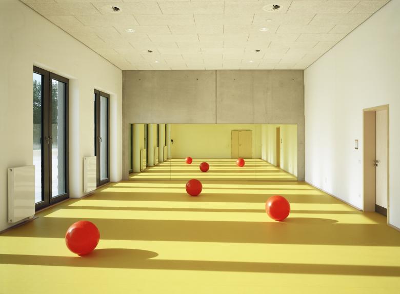 Der Neubau erfolgte in Systembauweise, was zu einer beschleunigten Bauzeit des Rohbaus führte. Die Struktur des Gebäudes gliedert sich in drei Bereiche: Klassenzimmer, Veranstaltungsbereich und Sporthalle, wobei jeder Bereich eine unterschiedliche Geschossigkeit aufweist.