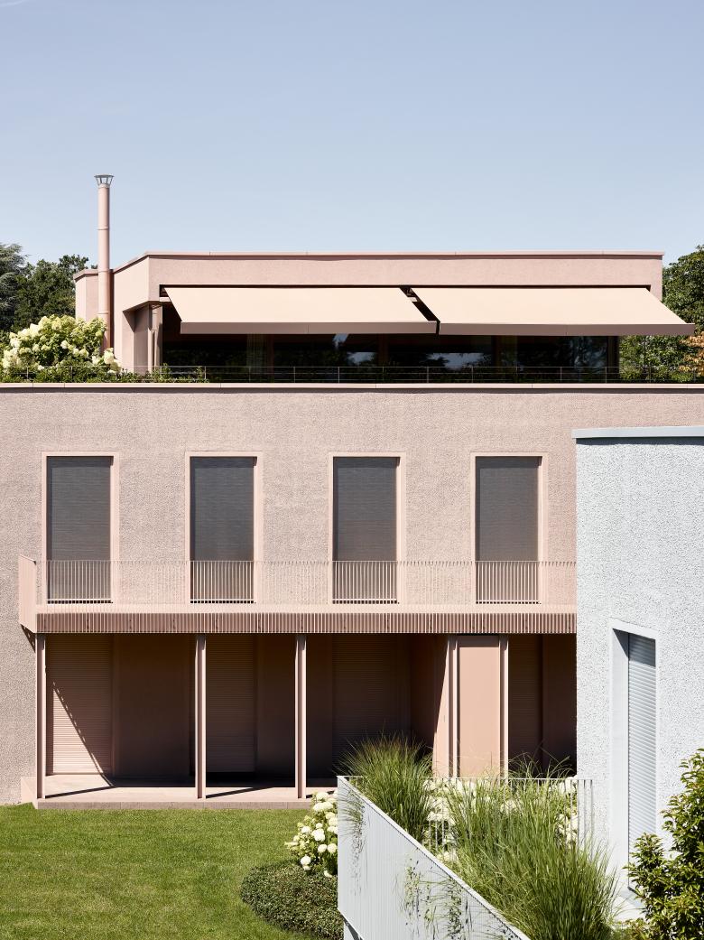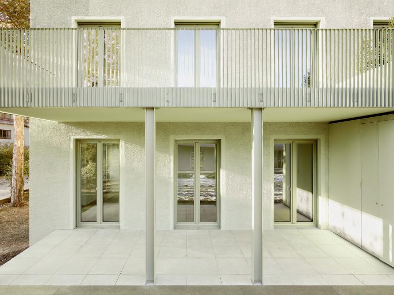 Die neuen Gebäude orientieren sich an dem 2016 errichteten Wohngebäude, entwickeln jedoch durch unterschiedliche Details und Farbgebung ihre jeweilige Eigenständigkeit.