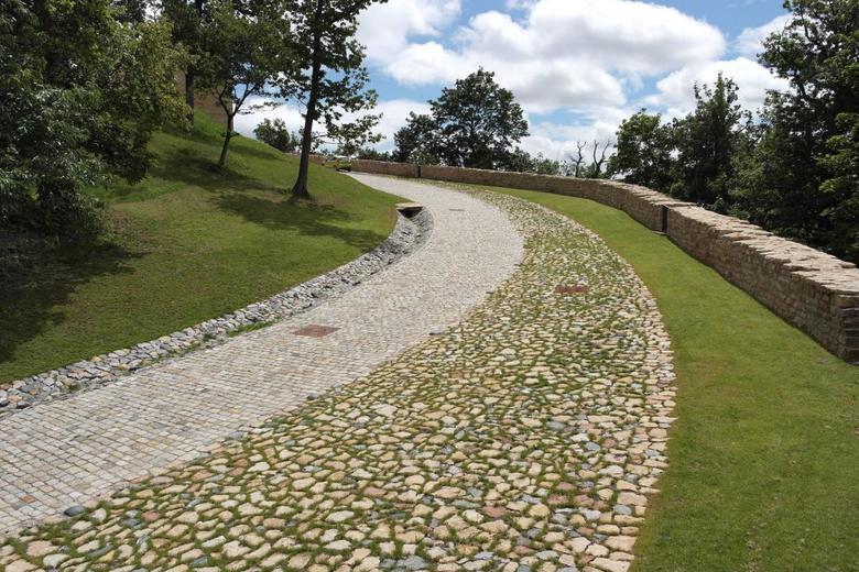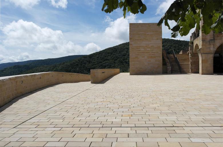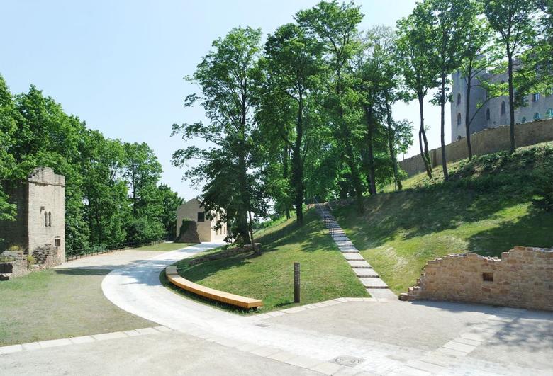 " ... zusammengefasst durch den einheitlich verwendeten Sandstein und mittels der starken räumlichen Einfassung wird ein neuer und so schöner öffentlicher Platz geschaffen, wie er nördlich der Alpen kaum ein zweites Mal zu finden ist. Anstelle filigraner Geländer laden die niedrigen und breiten Natursteinmauern entlang dieser Panoramaterrasse zum Sitzen ein...." Die Aufgabenstellung für das neue Entreé des Hambacher Schlosses ist vielschichtig: barrierefreie Erschliessung der Anlage, eine neue Wegeführung, touristische Vermarktungsmöglichkeiten und eine Attraktivierung des Schlossparks.