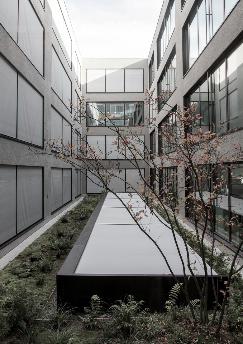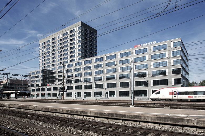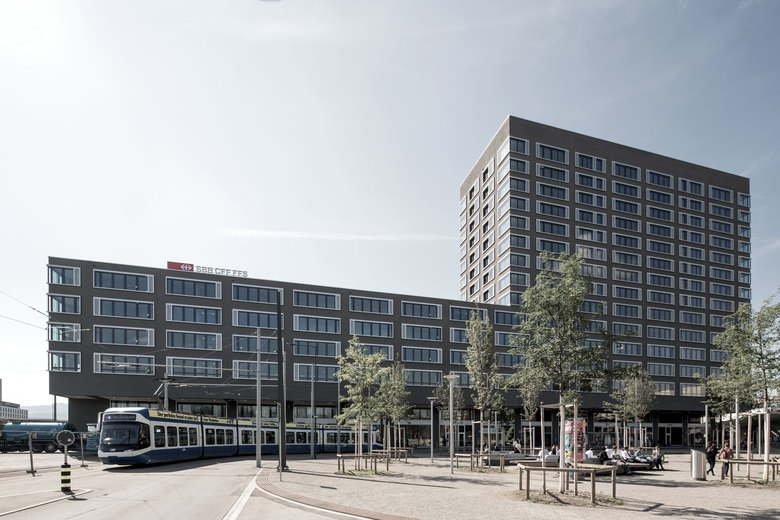 Das 56 Meter hohe Plaza-Gebäude bildet als Teil eines mehrteiligen Überbauungsensembles mit dem Vulkanplatz den städtebaulichen Auftakt des Areals gegenüber den Bahnhof Altstetten. Die flächenbündige Überführung des Längsbaus in die Hochhausscheibe betont die Hierarchie der Platzseite. Die Auskragung zum Vulkanplatz ab dem zweiten Obergeschoss ermöglicht im Bewegungsbereich des Fussgängers fliessende Raumfolgen zwischen den einzelnen Gebäuden. Die Einschnitte im Süden des Plazas und die bahnseitige Höhenstaffelung dienen der Anbindung an die Gebäude auf der gegenüberliegenden Seite der Gleise. Die Fassade unterstützt die Figurhaftigkeit des Gebäudes durch die massive, monolithische Materialisierung. Die hervorspringenden Kastenfenster mit textilem Sonnenschutz gewährleisten den sommerlichen Wärmeschutz. Im Sockel befinden sich Büros und auf den darüberliegenden Geschossen Stadtwohnungen. Das Erdgeschoss bietet Verkaufsflächen sowie ein gastronomischer Betrieb und die Untergeschosse Technik- und Parkplatzflächen an. Die Büros werden über zwei repräsentative, ovale Treppen und Aufzüge im Osten sowie über die beiden westlichen Hochhaus-Kerne erschlossen. Die flexibel ein- und unterteilbaren Bürogrundrisse erhalten durch den Lichthof und den Fassadenrücksprung optimal belichtete Arbeitsplätze. Die exklusiv ausgestatteten 2-3-Zimmer-Wohnungen mit Loggias bieten urbanes Lebensgefühl. Das ganze Gebäude und besonders die Fassade sind geprägt durch sich konsequent wiederholende Standarddetails. Im Gebäudeinneren herrschen reduzierte Details mit klaren Kanten und Linien vor, deren Zurückhaltung besonders im Mieterausbau Akzentuierungen zulassen, ohne die klare Grundstruktur aufzulösen. Das Gebäude erreicht den Minergie-Standard und wurde vom atelier ww im Generalplanermandat geplant.