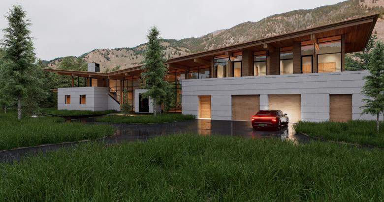 The central living area rises two stories, flanked by the master suite/ exercise/ yoga area to the north and the garage/ guest suites to the south. With unobstructed views of the east and west, this living space captures the ever-changing beauty of the mountains.
