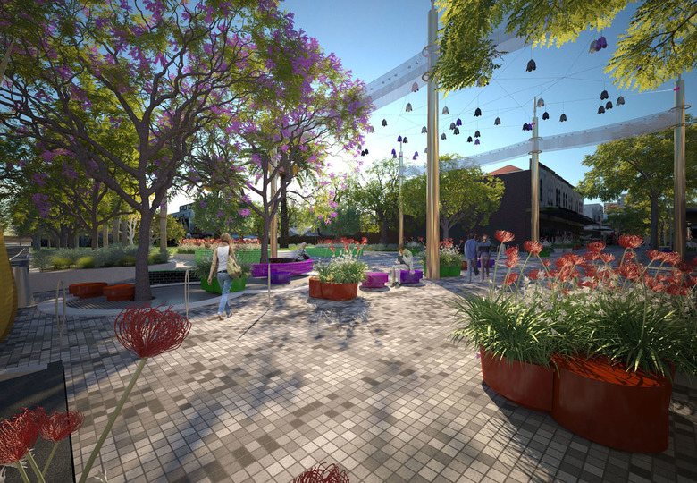 Widened footpaths across Greville Street aim to re-encourage equitable social exchange through outdoor café dining, casual seating mixed with planting, and footpath trading zones. A new focus on diverse planting reprioritises the pedestrian and allows for the proverbial pause, with moments to reflect, unwind, or simply Instagram under the catenary lights.