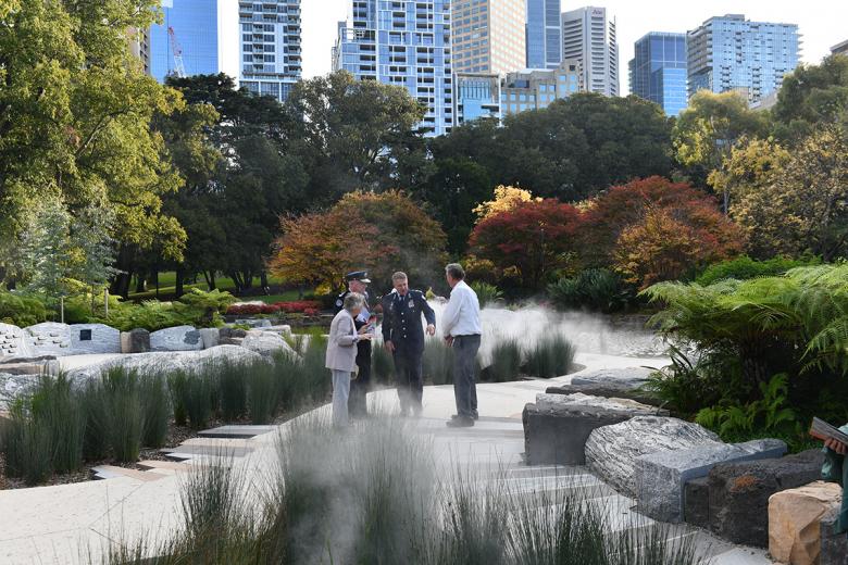For this reason, the design has evolved to become a ‘garden memorial’. This strategy differs from other memorials in Melbourne’s parklands, which are typically individual sculptures or objects placed into the larger parkland scene.