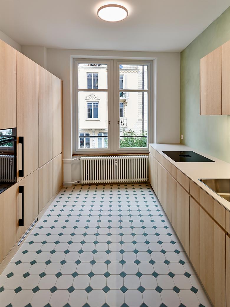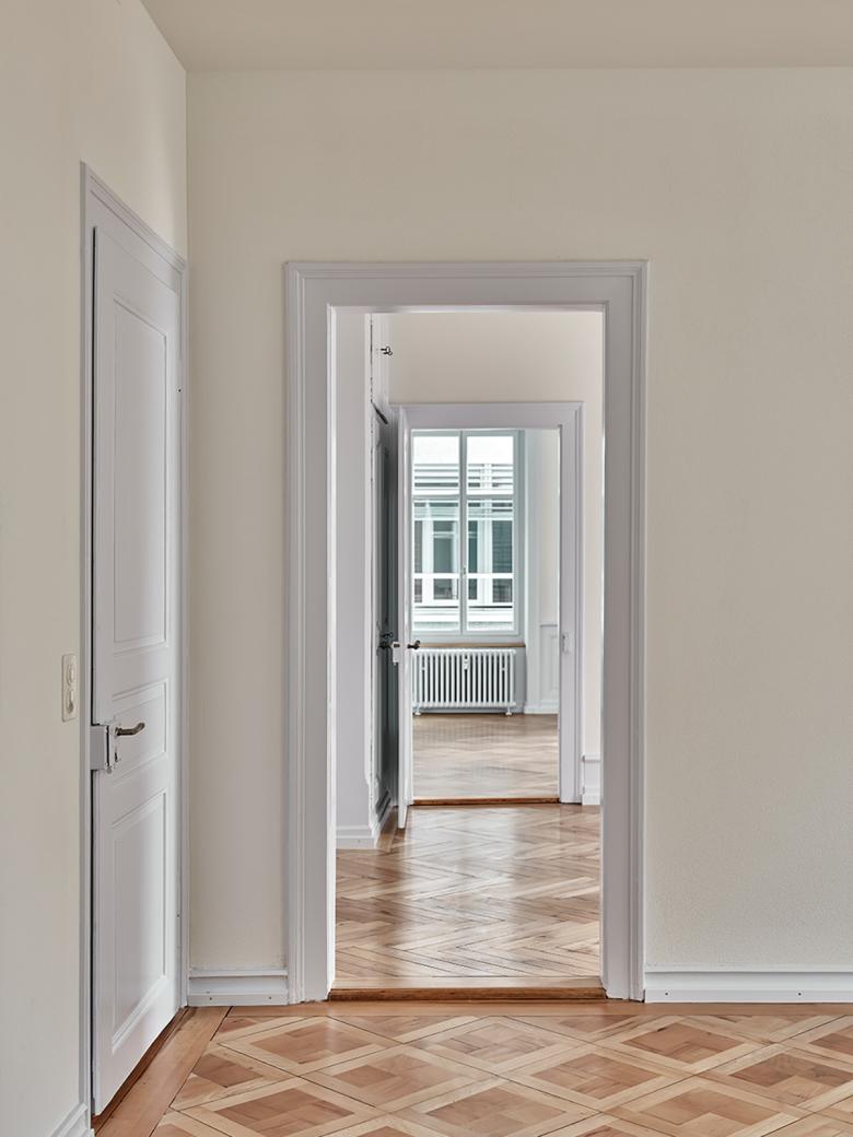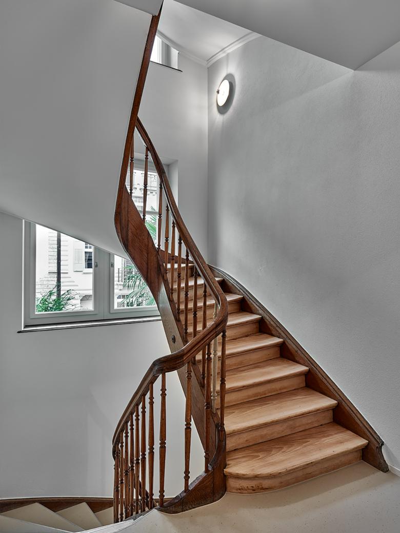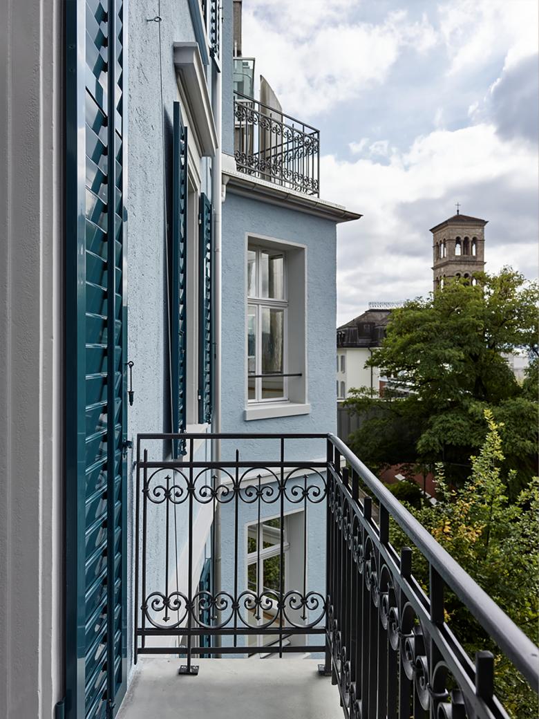 Der Entscheid, die grosszügigen Geschosswohnungen mit bis zu sechs Zimmern zu erhalten, wurde zu Beginn des Projektes gefasst, jedoch in Verbindung mit komplett neu erstellten Badezimmern und Küchen. Zudem wurde der marode Estrich zu einer modernen Dachwohnung mit privater Dachterrasse umgestaltet. Im Estrich lagerten zudem bis zum Umbau das gesamte Œuvre des Künstlers Walter Haymann. Im neu erstellen Kunstlager welches komplett unter Terrain liegt und durch einen Durchstich mit dem Bestandesbau verbunden wurde, ist nun das Gesamtkunstwerk sicher archiviert.