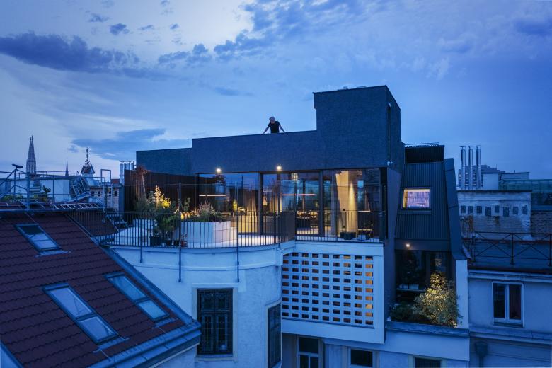 In a Viennese residential building constructed around 1900, two additional separate residential units were to be created in the course of an attic conversion. Our goal for this project was to create as many open spaces and terraces as possible while at the same time ensuring maximum privacy for the two residential units.