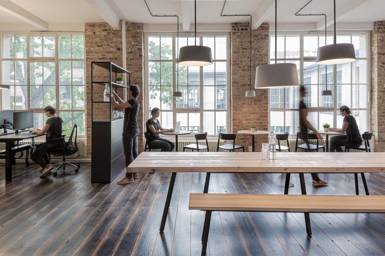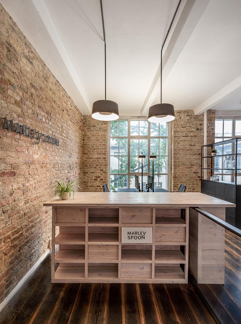 The Berlin offices of Marley Spoon are located in a former factory building. They were designed to be open and flexible, offering gathering and relaxation spaces, as well as spaces for conferences and concentrated work.