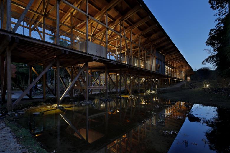 この場所は、地域のNPOや石井さんの仲間たちの協力により、さまざまな人たちにとっての居場所となっていく予定だ。他者の手を借りたい近隣のひとり親家庭や、不登校などの子どもたちにとっての場所になればと皆が考えている。ここに集まる高齢者、障害者、子どもたち、地域の人々、これから彼らの関わりが少しずつ始まろうとしているのだ。地域にじんわりと馴染んでいくために、庭の池や竹穂垣は、地域の人たちにも協力してもらい一緒につくってきた。賑やかなワークショップでの出来事ではあったが、さまざまな人たちがこの場所で過ごすさまを見ていると、この建築は橋のようにも、お寺のようにも見えてくる。みんなが縁側でおにぎりを頬張る姿を眺めていると、この建築は、近代日本が無くしてしまった大切なものを思い出せてくれる。