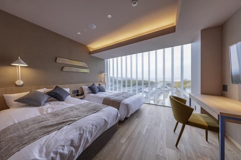 クライアントは、これまで多くの温浴施設を展開されてきており、今回の計画では、主要事業である温浴機能に、スパやフィットネス、レストラン、ホテル事業を加えた初の複合施設の計画である。私たちは、デザインアーキテクトとして参画し、従来の温浴施設の主目的である癒しを楽しむ施設から、日常の暮らしを拡張してくれる居場所となるようにデザインを展開していった。例えば、施設の中心となるロビーは、仕事をしたり、話しをしたり、お茶を飲んだり、様々な楽しみ方ができるような空間となっている。また施設の象徴となるように、大きな水盤越しに庭を眺められる空間を作り、昔の銭湯にある富士山を眺めるように、いろんな世代の利用者が共有できる風景になるような空間を目指している。