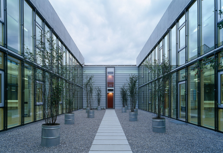 Zwei langgezogene Bauvolumen mit den Spezialräumen umfassen das Herzstück des Schulgebäudes – die mit Innenhöfen alternierenden Klassenzimmerquerbauten. Alle Klassenzimmer weisen auf beiden Längsseiten verglaste Fronten auf. So sind alle Räume mit natürlichem Licht bestmöglich ausgeleuchtet, was für die Benutzer im Gebrauch ein Maximum an Freiheiten hinsichtlich Gestaltung und Nutzungsflexibilität offen lässt. Zusätzlich verfügt jedes Klassenzimmer über einen privaten Aussenraum im angrenzenden Innenhof oder auf dem Dach des Klassentraktes, der individuell genutzt und gestaltet werden kann.
