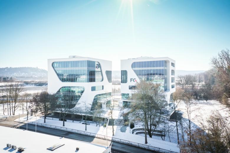 Ein Gebäude ist intelligent, wenn es nicht nur in der Gegend herumsteht, sondern auf die Bedürfnisse der Benutzer einerseits und die äußeren Einflüsse anderseits reagieren kann. Im besten Fall erhöht es den Komfort des Menschen bei gleichzeitiger Optimierung der Energie-Effizienz. Das intelligente architektonische Element des FC Campus Gebäudes ist eine im Glasaufbau integrierte Folie, die normalerweise in Apple Smartphones verbaut wird. In der Dimension einer Gebäudefassade ist das eine Weltneuheit: in die Folie integrierte interaktive Flüssigkristalle ermöglichen eine sensorgesteuerte Reduktion des Licht- und Wärmeeintrags in das Gebäude, ohne dabei die freie Durchsicht zu beeinträchtigen. Trotz großflächiger Verglasung ohne bauliche Verschattungselemente muss das Gebäude auch im Hochsommer kaum gekühlt werden.