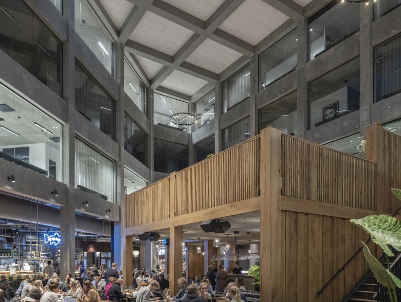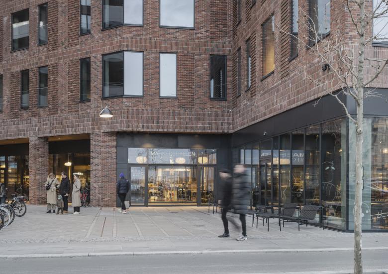 With its combination of residential, commercial and an open ground floor with a variety of functions, Nicolinehus shows how to create and attract more people to a new district such as Aarhus Ø. Here, a central market place on the ground floor makes up the foundation of a buzzing and lively business life. With room for more than 15 eateries and cafés as well as a fitness centre and a skybar at the top. All of this combined means that Nicolinehus attracts a large flow of people during both day and evening hours.