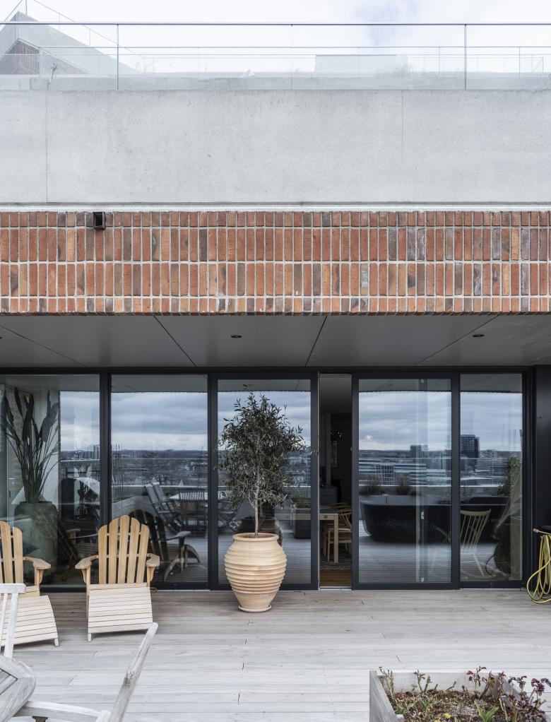 Nicolinehus has been developed with a long-term perspective in mind – both in relation to its social, economic, and environmental value creation. It is a building that can withstand being used, and where solid materials such as brick, wood and concrete dominate and, in combination with bright, hanging terraces, help to bring variation to the surrounding urban space. In addition, the red bricks that particularly characterizes the building accommodates both the connection to Aarhus City Centre and the environment of the old industrial port area – a necessary quality if the building is to withstand the harsh port environment for the next 100 years.