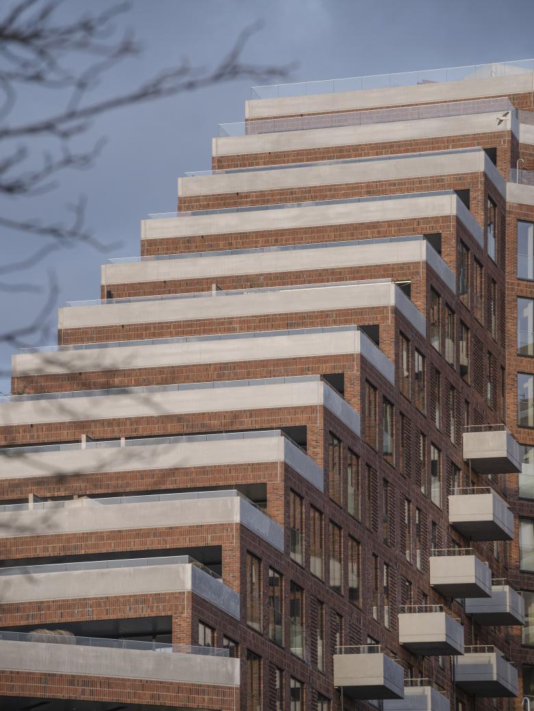 Nicolinehus comprises a total of 243 apartments, with eight of them functioning as town houses. and city. In addition to giving the building a distinct and attractive expression, the terraced structure provides the best views of the city, its forests, and the ocean, and plenty of space to enjoy all kinds of quality of life – whether this is a cup of coffee in the quite morning hours, watering plants, or just watching as the sun disappears behind the bay.