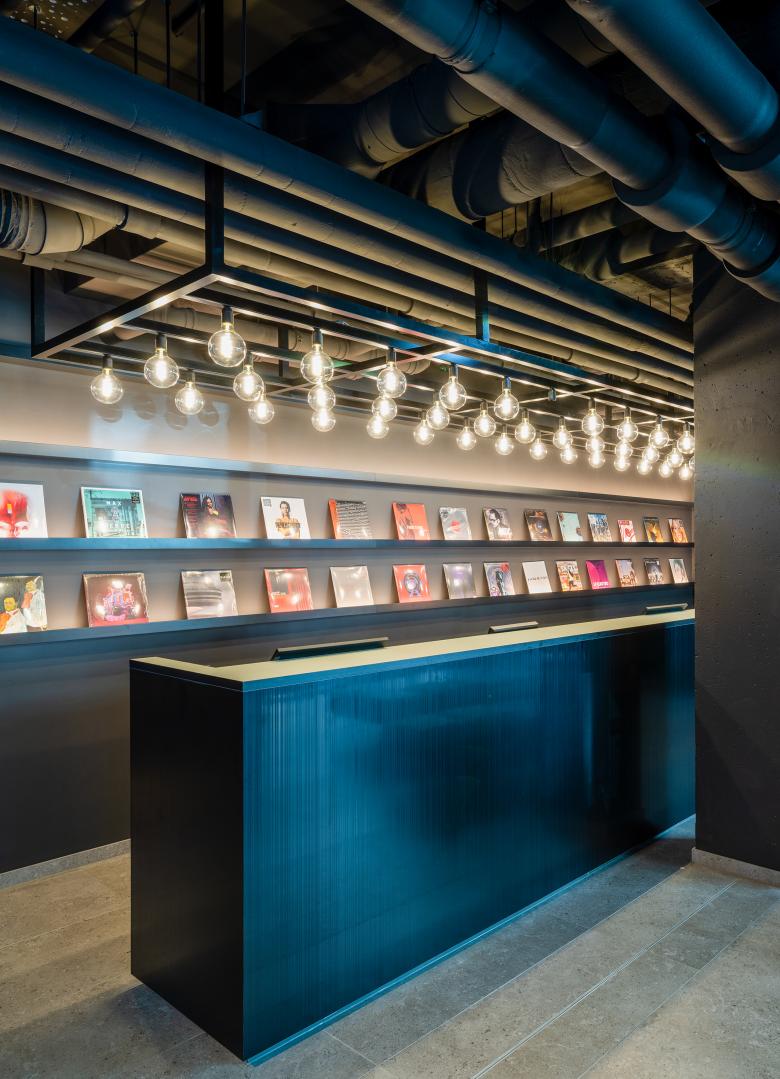 Das Außergewöhnliche am Jaz in the City zeigt sich bereits am Eingang. Tatsächlich betritt man das neue Lifestyle-Hotel in Wien Mariahilf durch einen Plattenladen mit einer Verkaufstheke, die gleichzeitig als Check-in-Desk fungiert. „Ziel war es, ein Hotel zu gestalten, in dem sich Musiker wie Musikbegeisterte augenblicklich zuhause fühlen. Entsprechend haben wir ein Konzept entwickelt, das vieles aus der Welt der Musik ableitet“, erklärt Architekt Erich Bernard von BWM Architekten, der selbst begeisterter Hobby-Musiker ist.