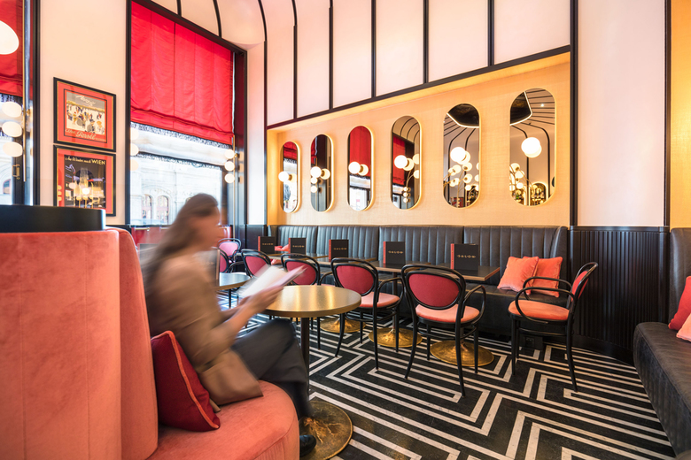 Design und Gestaltung eines neuen Sacher Cafés mit Bar im Hotel Sacher vis à vis der Oper in Wien (ehemalige Sacher Stube) auf rund 70 m2 mit 40 Sitzplätzen