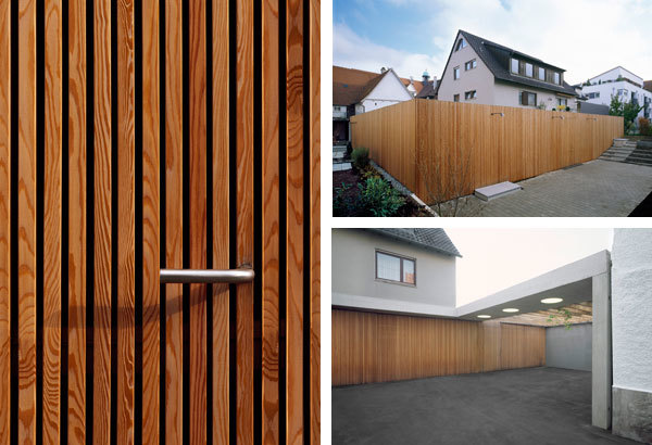 Es war uns wichtig den bereits 2001 umgebauten Verkauf in das Gesamtkonzept gestalterisch mit einzubinden. Die Materialwahl und Detailausbildung in Ihrer Reduktion und die wenigen gezielten Maßnahmen bilden die Grundlage dafür im Äußeren wie Inneren. Der Hofbereich wird durch den Anbau eines großzügigen Vordaches aus Stahlbeton neu eingefasst; und bildet gleichzeitig den Rahmen für eine hölzerne, großzügige Pergola, die als lichtes, weinberanktes Lamellendach Raum bietet zum Keltern und für die traditionellen Weinfeste. Alle heterogenen Wand-, Tor- und Türbereiche erhalten ein einheitliches Holzkleid und bilden die Kulisse des neuen Hofes.