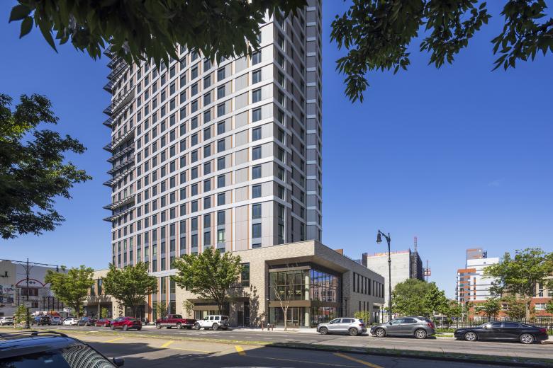 425 Grand Concourse is the largest Passive House (PHIUS) project in North America to date. This new mixed-use and mixed-income development creates 277 units of affordable housing. The two-story base houses a medical facility, supermarket, community support space, and a new student services center for CUNY Hostos—each also designed by Dattner Architects.