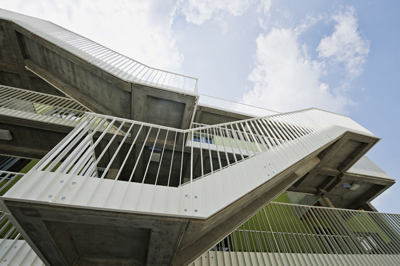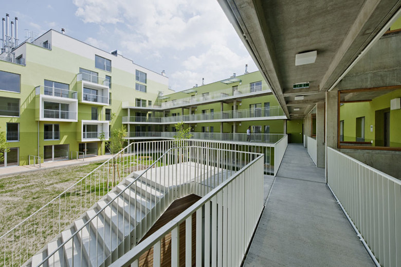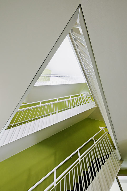 Zum anderen sind die Baukörper in den Obergeschossen terrassiert, was von Geschoss zu Geschoss unterschiedliche Wohn- und Freiraumsituationen möglich macht.