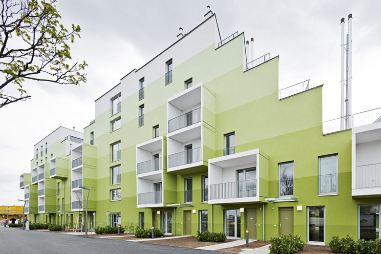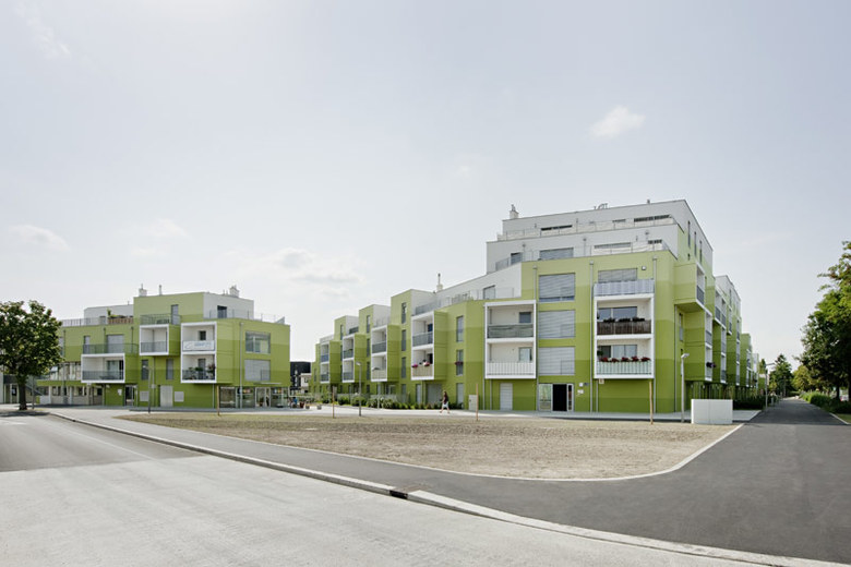 Durch die Farbgestaltung schließlich wird die so entstandene Vielfalt wieder zu einer Nachbarschaft zusammengefasst und mit eigenständiger Identität versehen.