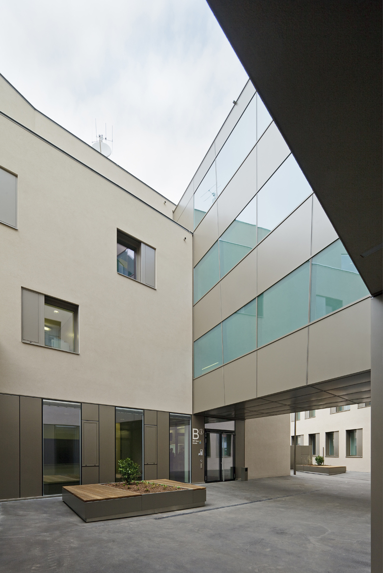Indem es sich in die kleinteilige Parzellenstruktur des Standorts einfügt, wird es in mehrfacher Hinsicht zu einem neuen „Stadtteil“ von Krems: Gassen, Überbrückungen, Passagen, Innenhöfe, Dachgärten etc führen zu kremstypischen Motiven wie in der Altstadt, die für alle Nutzer ein vielfältiges Alltagsumfeld entstehen lassen.