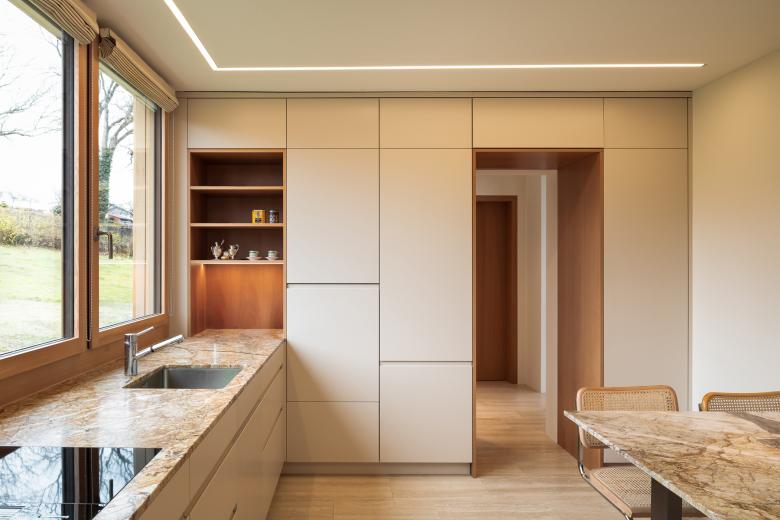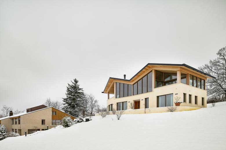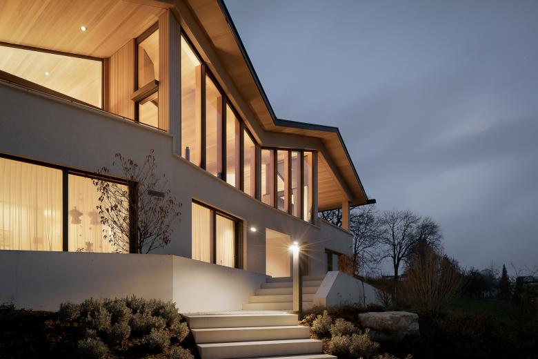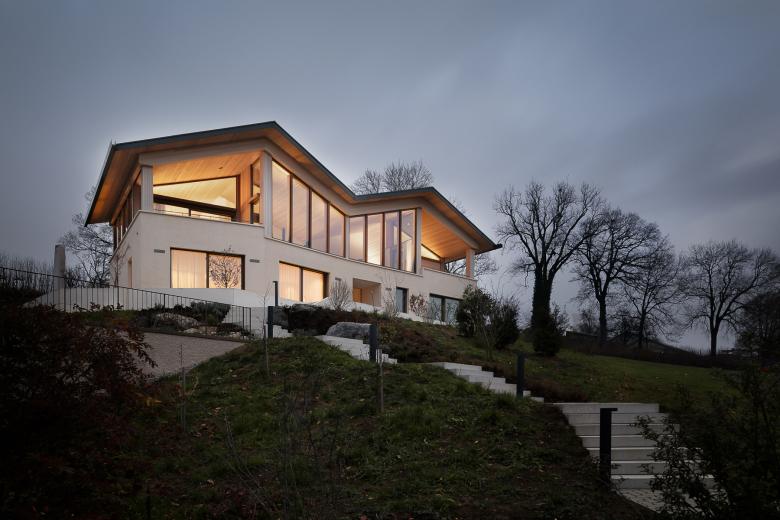 Die Bauparzelle befindet sich an bevorzugter Lage am Kammelenberg. Wunsch der Bauherrschaft war es, vom Haus westlich der Bauparzelle in ein kleineres, altersgerecht konzipiertes umziehen und den Nachkommen das Wohnen im alten, für eine Familie konzipiertes Haus zu ermöglichen. Dabei sollte das Gebäude und die Umgebung pflegeleicht und sich in die Landschaft integriert gestaltet werden.