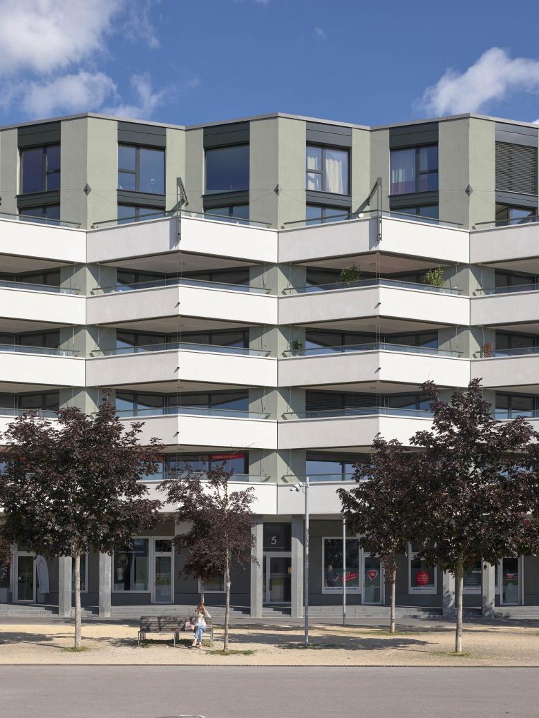Das Projekt Biel Esplanade Nord auf dem ehemaligen Gaswerkareal in Biel säumt in unmittelbarer Zentrumsnähe einen bedeutenden, städtischen Freiraum / Auftakt zum langgezogenen Platz bildet das prägnante Kongresshaus von Max Schlup aus dem Jahre 1966 / An der nördlichen Längsseite bildet das Projekt eine siebengeschossige, horizontal geschichtete, 300 Meter lange Stadtfront, welche durch gefaltete Balkonloggien eine spezifische Identität entwickelt / Die Arkade im hohen Erdgeschoss sowie die zweigeschossige Ausformulierung des Attikas verleihen der Südfassade eine spannungsvolle Gliederung / Unterschiedlich ausgerichtete und gestaltete Höfe prägen das Projekt im Inneren und ermöglichen eine differenzierte Nutzung der Erdgeschosse / Das Programm umfasst Wohnungen (Teil West und Ost) ein Hotel (Teil West), ein Altersheim (Teil West) und diverse Erdgeschossnutzungen mit Cafés und Läden.