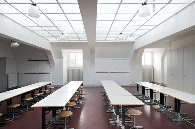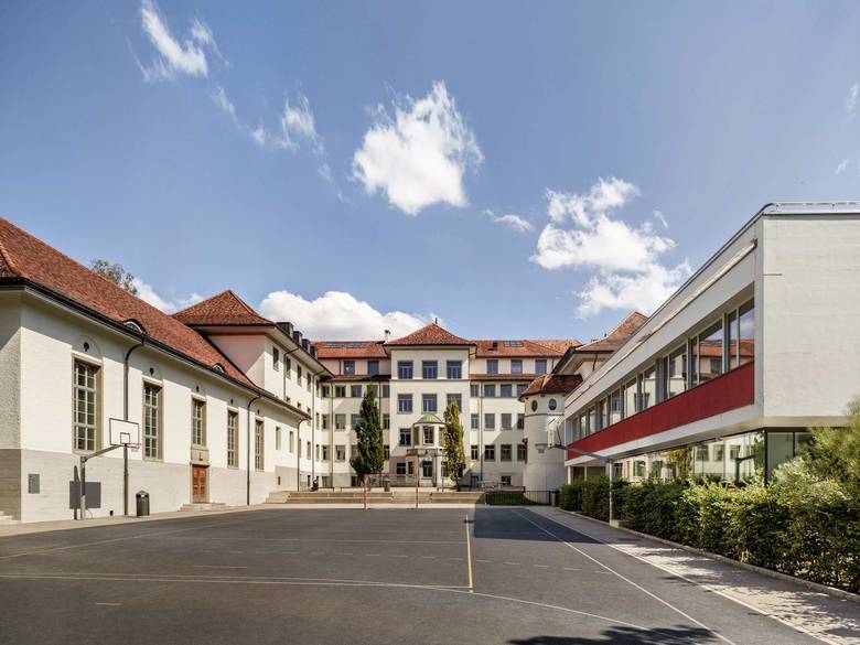Das denkmalgeschützte Schulhaus Laubegg sollte nach langer Gebrauchsdauer eine nachhaltige Auffrischung erfahren und komplett saniert werden. Die betrieblichen Abläufe waren zu optimieren und die gesetzlichen Anforderungen zu erfüllen. Die Bibliothek, Turnhalle, Musikzimmer, Schulküche, Tagesschule und die Spezialzimmer wurden den aktuellen Ansprüchen nicht mehr gerecht. Der aus den 50er Jahren stammende Anbau wurde stärker in die Gesamtanlage eingebunden und über die neue erdgeschossige Verglasung mit einer Bibliothek ergänzt.