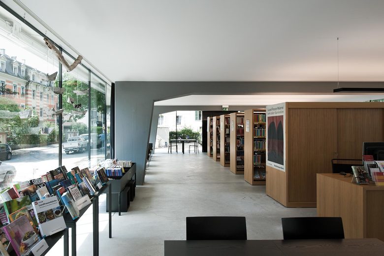Der gedeckte Raum unter dem Schulhausanbau wurde zu einer Bibliothek umfunktioniert, welche sowohl der Schule wie auch den Anwohner zur Benutzung freisteht.