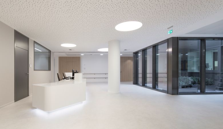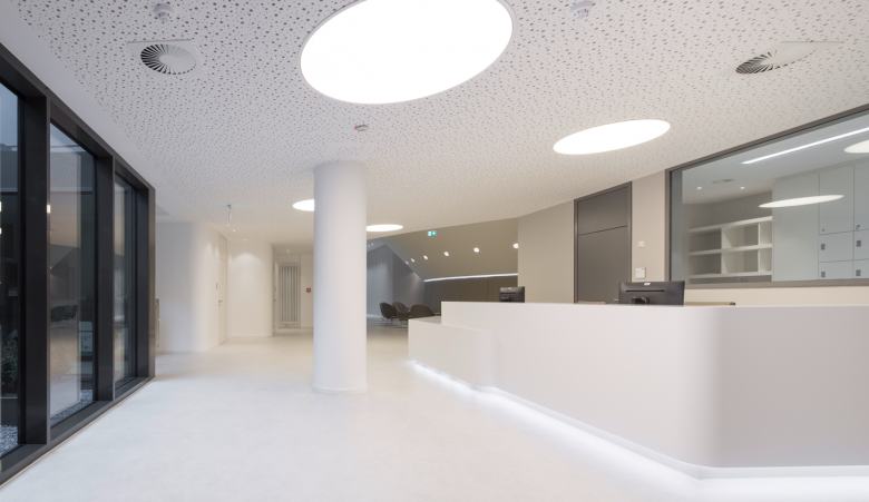 Ein menschengerechtes Raumprogramm, sanft schwingende Flächen, ausgefeilte Details und ruhige Oberflächen kreiieren die wohltuende und professionelle Atmosphäre.