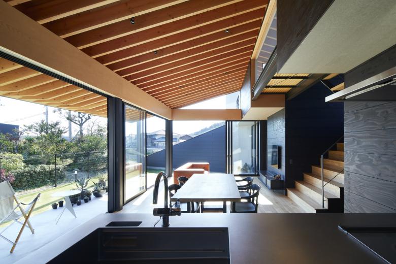 We hope that the enjoyment of views in multiple directions will enrich daily life, and that the space created by connecting the views will blend in with the environment.