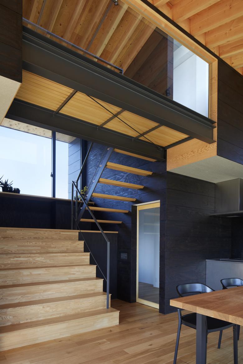 A large south garden and LDK were placed to create a connection with the garden of the parents' house in front of the house. The deep eaves and terrace are designed to control the sunlight while providing shelter from the rain for the plants. In addition, a wide staircase facing the south garden allows the residents to sit and enjoy the view of the garden.