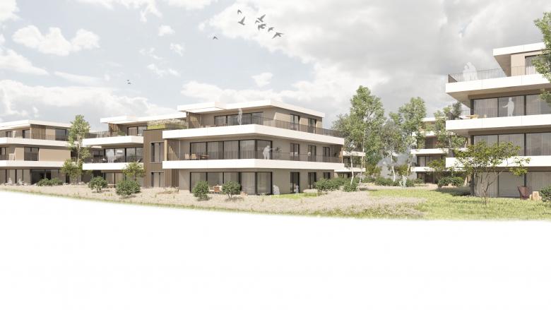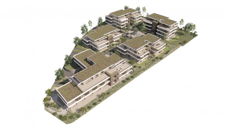 Die Eigentumswohnungen bilden den vorderen südlichen Bereich der Gesamtüberbauung und geniessen absolute Privatsphäre. Die Mietwohnungen werden in einer zweiten Phase erstellt und vollenden die Gesamtbebauung mit den beiden Freiräumen.