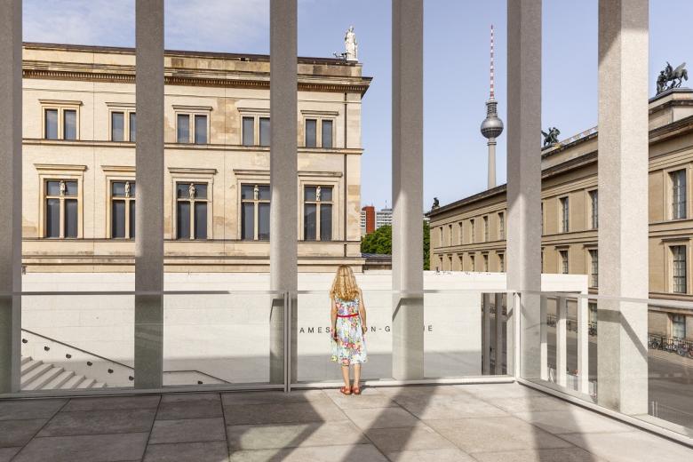 Die starke Architektur erforderte eine meisterhafte Integration des neuen modernen Multifunktionsgebäudes in das bestehende historische Ensemble. Die neuen schlanken Betonsäulen nach David Chipperfield reinterpretieren die Kolonnaden-Promenade des Architekten Friedrich August Stüler, die das Neue Museum mit der benachbarten Alten Nationalgalerie verbindet. Die monumentale Freitreppe der James-Simon-Galerie zitiert den Karl Friedrich Schinkels Aufgang zu seinem Alten Museum.