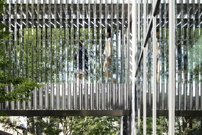 既存の大きな樹木や街路樹の間に差し込まれるようにコンプレックスのメインとなる『代官山 蔦屋書店』の三棟は配置されている。建物そのものをブランドロゴのT字に型どり、ファサードには小さなTがモチーフとして編み込まれたような表情を見せるなど、KDaならではのさりげないウィットが演出されている。三棟の建物は旧山手通りから少しずつステップバックするように配置され、巨大な一つのボリュームとして読み取れないようになっている。