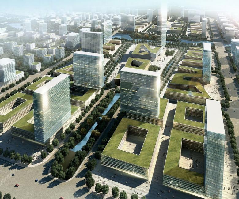 Das kompakte Stadtzentrum hat eine dichte Stadtstruktur und wird durch die hier angesiedelten Geschäfte, Restaurants und kulturelle Einrichtungen belebt werden. Weithin sichtbar markieren mehrere repräsentative Hochhäuser dieses Zentrum. Jedes Viertel erhält außerdem sein eigenes (Stadtteil-)Zentrum, das die Einwohner fußläufig erreichen können und mit allen notwendigen Nutzungen ausgestattet ist. Zentrale Einrichtungen wie eine internationale Schule, ein Krankenhaus etc. befinden sich in jeweils einem Viertel und werden von allen Einwohnern genutzt.