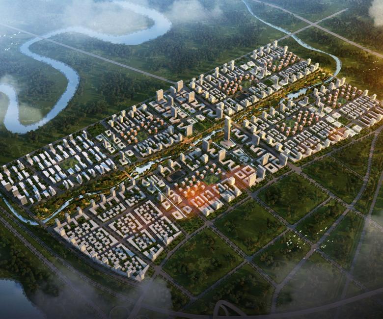 Der Entwurf von KSP Jürgen Engel Architekten International für das Wettbewerbsgebiet zeichnet sich durch ein kompaktes Zentrum und vier Stadtquartiere mit Mischnutzung (Wohnen, Arbeiten, Einkaufen, Freizeit) aus. Rückgrat des neuen Entwicklungsgebietes ist ein ca. 125 ha großer Grünzug entlang des Flusses, der sich in Nord-Süd-Richtung über das gesamte Planungsgebiet erstreckt. Zwei Boulevards durchqueren den zentralen Park mittig in Ost-West-Richtung und verknüpfen den neuen Stadtteil mit der übrigen Stadt. Im Norden wird die „Qingdao Science and Technology City“ an eine bestehende Autobahn angeschlossen und von dieser durch Ausläufer des Parks getrennt.