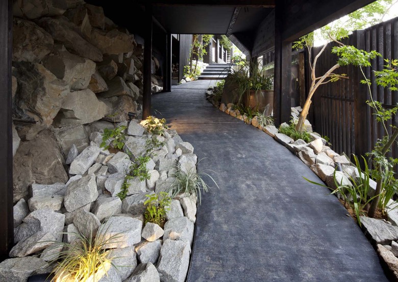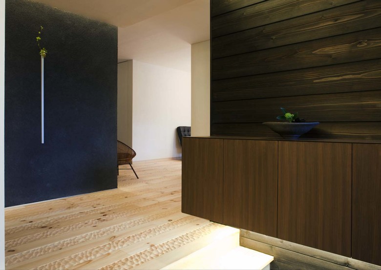This Japanese-style hotel circled by abundant nature was inherited from a father of the late head of the family to the hostess who is a client, and renewal opening was achieved in this autumn. A plan period of a remodeling plan is about 15 months. Hostess's dream and earnest feelings to this Japanese-style hotel were poured. By a hostess and 3 persons in a local construction company and our office,I associate and a meeting was piled up though far distance. The building flame which is said to be remodeling of the wooden building which has passed for more than 30 years and is detected at the time of dissolution was also injured. The change by which origin is fusion of old and newness and an image while utilizing something to have that, it was done. When I enter during opening a single sliding door of the delicate lengthwise grid, they feel the space reborn again is wide there. Because the neighbor who met oceanside was dissolved, I'm going to find the wonderful location which comes off to the sea. When opening the wooden doors which can do the whole opening, there are "Syohonro" which made with the black and "Myohonro" which made with the white. A kitchen ridge it neighbors also made the first floor of improvement on a part with this remodeling. The built-in kitchen you could enter newly, large-volume shelf and expansion in a workshop. A heart shut itself up for a hostess at this place which became easy to use, you make one piece you're entertaining.
