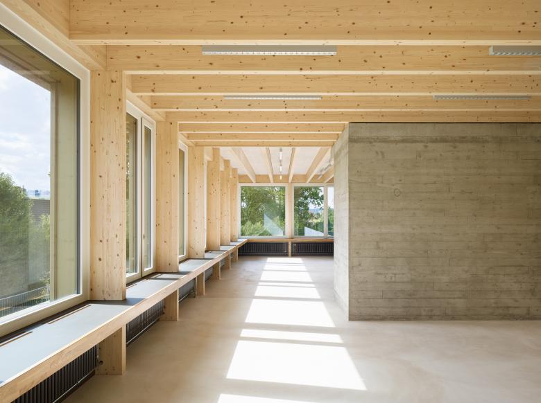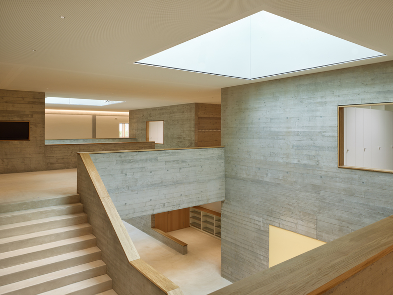 Das Gebäudeensemble verleiht dem heterogenen Siedlungsrand eine neue, starke Identität. Gleichzeitig bildet das Schulzentrum die ideale Lernlandschaft für die Einführung von offenen Unterrichtsformen: flexibel, hell und grosszügig.