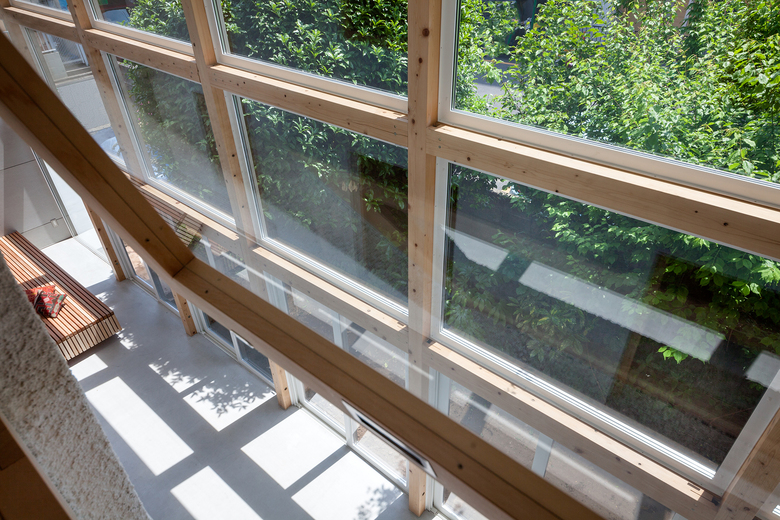 This void space will protect the privacy from the neighbor to the south (currently a parking lot and a wooden apartment) that will be planned eventually, control the heat of the sun according to the season, connect the separated first and second floors, and have the basic function of communication between the family members. It is not a single space called a sunroom, but a space without a name that is more diverse and rich.