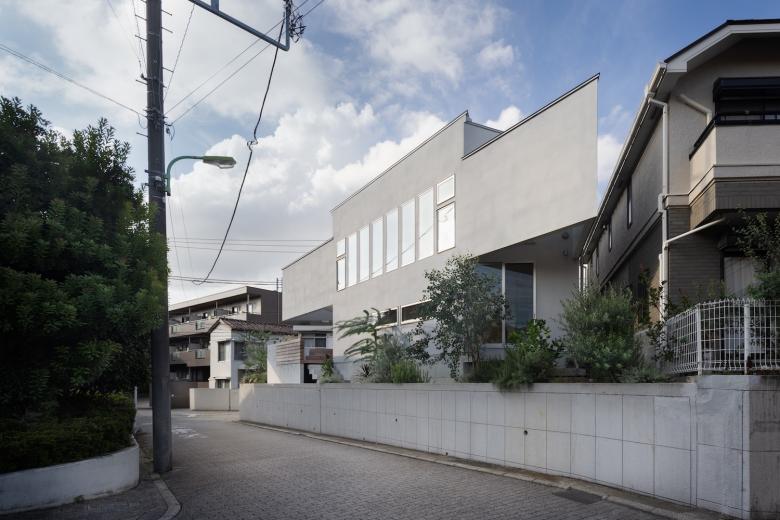 Two of the three sides of the triangular site border the road and the other side borders the neighbouring land, so privacy is invaded no matter which direction it opens. On the other hand, it is fortunate that the site is surrounded by a road and that the level of the site is higher than the road surface, which allows for good daylight and ventilation all day long, even in an urban residential area.