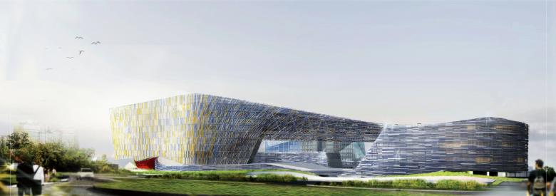 b) democraticità e integrazione: dall’architettura tout cour all’architettura-paesaggio: le torri direzionali perdono la propria autoreferenzialità costruendo un’architettura a prevalente dimensione orizzontale, democratica, e strettamente integrata con il paesaggio. Con un’architettura stratificata e dinamica, il Centro racconta la ricchezza del-la stratificazione geologica e la composizione del suolo-paesaggio come fonte di energia e di vita.